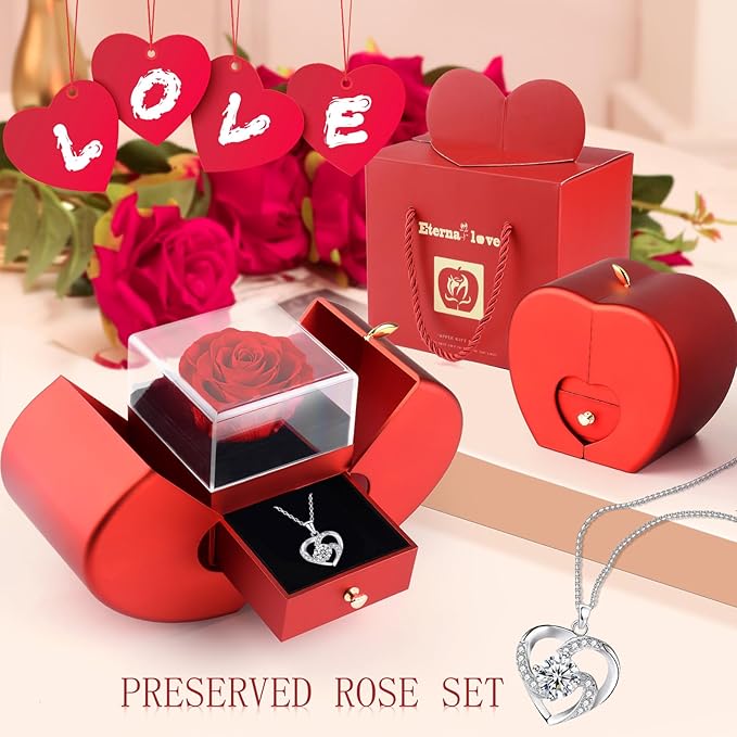 he necklace is made from high-quality materials, including a sparkling cubic zirconia pendant, and the rose is carefully preserved to maintain its beauty for years to come.